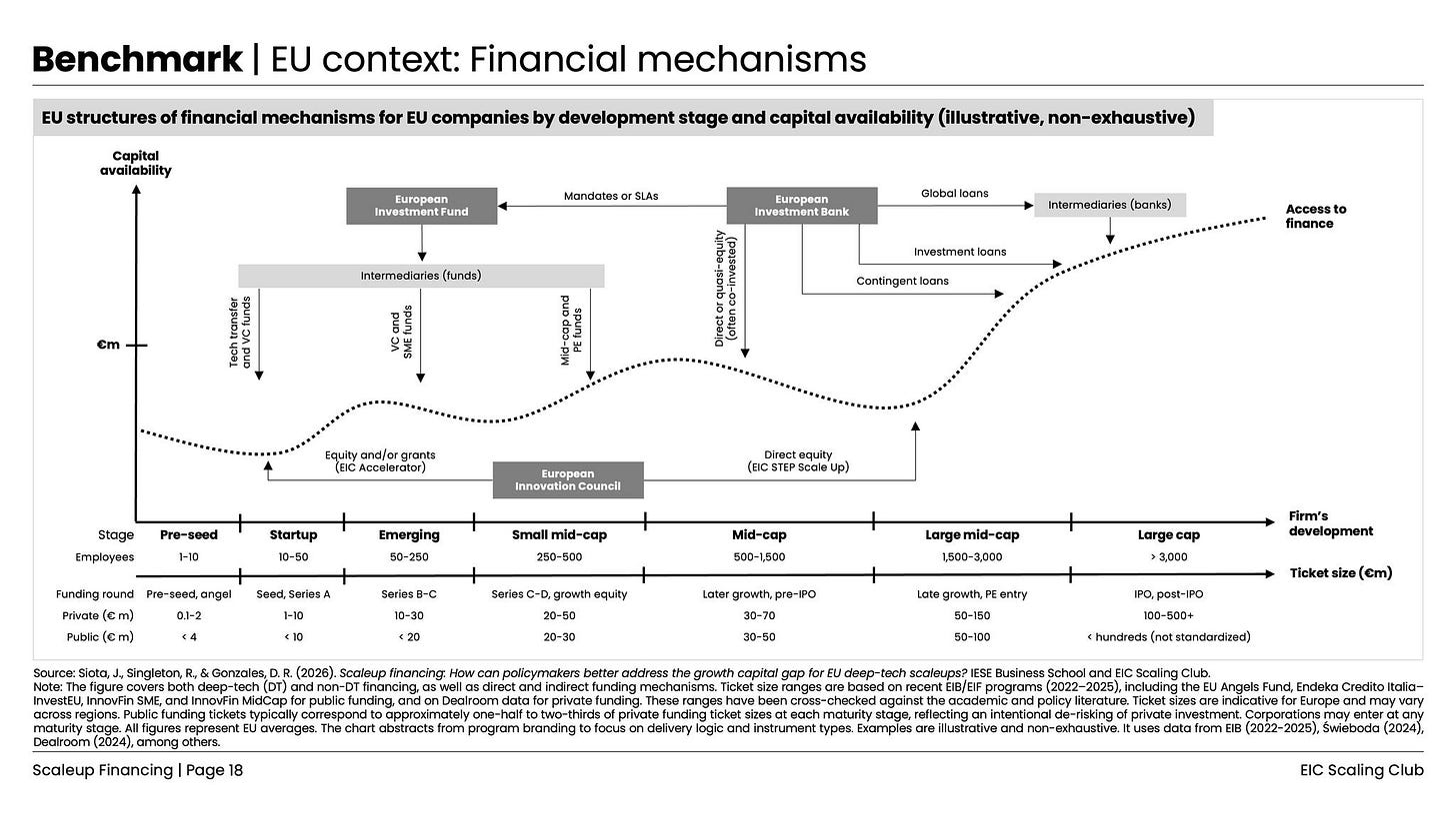 Josemaria Siota: Europe attracts 9x less venture capital per worker than the US despite having EIB, EIF, and InvestEU. The new European Innovation Council report identifies two gaps: growth finance, where startups struggle to access expansion rounds above €50m, and innovation finance, where short investment horizons constrain late-stage deep-tech capital. The report proposes pan-European fund-of-funds and blended finance to crowd in private capital.